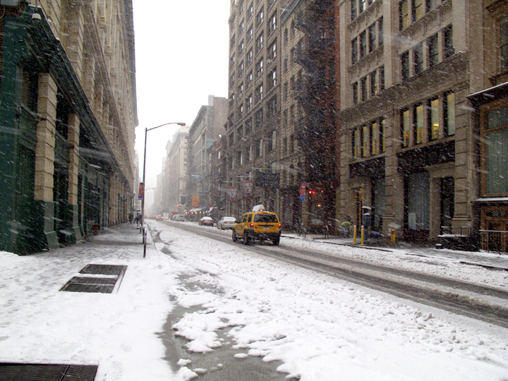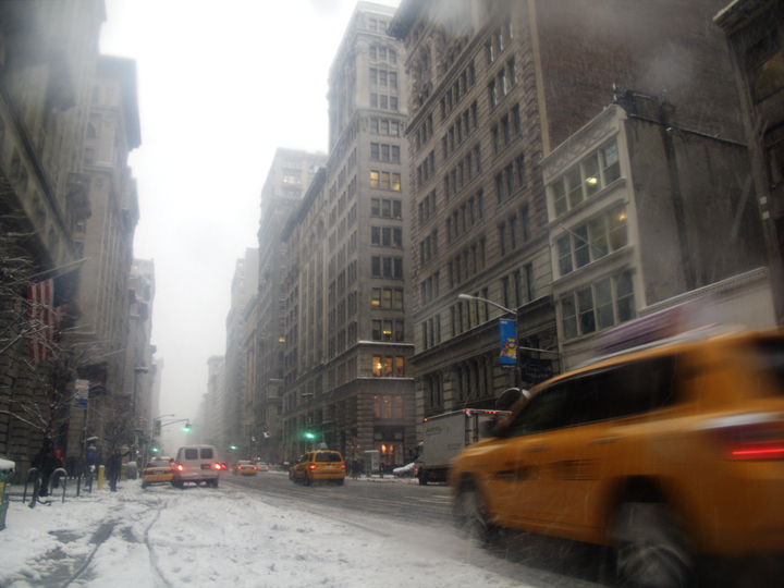 During my first blizzard in 2005, I strolled the empty streets of the Upper West Side to enjoy the frigid and flakey experience. Since 2005, I’d been meaning to get out and take some shots of the city during another blizzard. I finally got out today, armed with a Canon G10 P&S, and a cheap ziploc bag and took some shots around Fifth Avenue and 19th Street. The ziploc gave the first and third image a softened, diffused look. It only cost me 99 cents for the cheap bag, and I still got a box full of them!