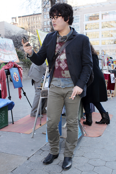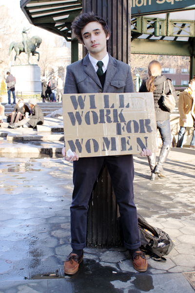Artem is an actor looking for work. The whole outfit is pretty sweet. It’s so early 20th century. Anybody with the balls to carry a sign like this in a busy area like Union Square, deserves some screen time. Imagine what he could do on celluloid…