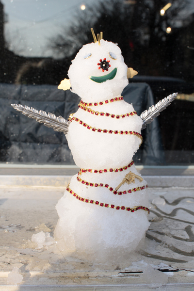 Oh how I love to build snowmen! Okay, not really. I forgot my mittens, so I wasn’t about to risk frost bite to build a snow-something. Anyways, yesterday, the Artist and Fleas market in Williamsburg had a little snowman building contest for it’s vendors. The prize…a free day! I seriously would’ve started to build one, but once I got outside and saw the competition, there were only 3 other people, I knew I didn’t stand a chance. Here are the lovely pieces by a couple of the vendors.