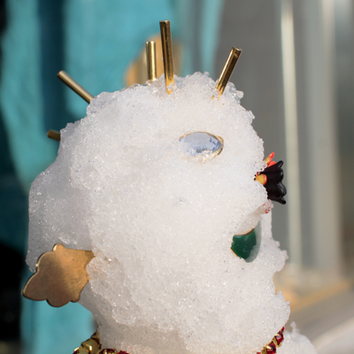 I think they took a dress form and packed it with ice. Still, a pretty fancy snowman.