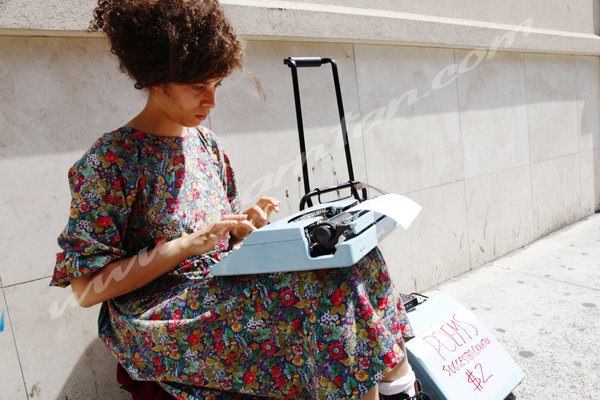 Only in NYC! How creative is this? While walking back from lunch today around the Union Square area, my Department and I came upon this young lady, Anayvelyse, offering poems for $2. She literally would type out a poem for you right then and there from a typewriter. Seriously, where else could this happen?!