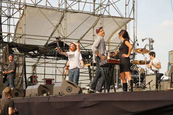 Jelly NYC’s second free concert series of 2010 took place yesterday at the Williamsburg Waterfront. Headlining the show was some rough and raucous performance by Murder City Devils…and audience members. Stage diving was kept to a minimum but nevertheless attempted by a few brave souls. Here are some shots of the day.