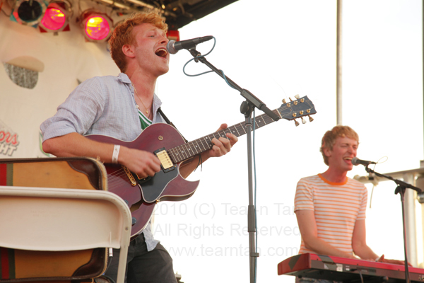 Last night’s RiverRocks show at Pier 54 had some great performances, in spite of the 20-30 minute long interruption midset due to some technical difficulties during opener Dinosaur Feathers’s performance when their sound went out. Once the sound returned, the gracious audience gave the Brooklyn band the love they deserved for their fifties inspired, summer-vacation-reminiscing tunes.