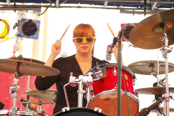 The west coast IS the best coast. Or so that’s what they say. Maybe this time it’s true. With such sunny, happy, melodic tunes reflecting it’s warm climate, the LA 3 piece put on a truly buzz-worthy performance. Though not as action-oriented as Free Energy, singer/songwriter/frontwoman Bethany Cosentino can rest assured that this performance was all about the music. No bass guitar here, but not needed as second guitarist Bobb Bruno seemed to play the lower pitches on his guitar, on most songs. The heat was also a major factor in last night’s showcase as Cosentino exclaimed “Seriously, what the f*ck?!” After a few more f-bombs were dropped she realized she was at a family oriented event. Laugh. Out. Loud.