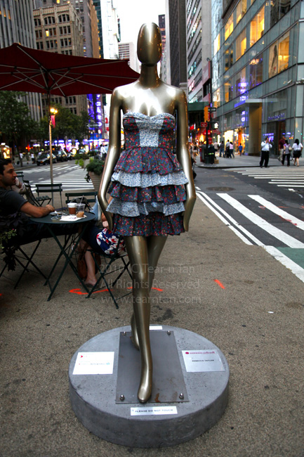 THE FASHION CENTER SIDEWALK CATWALK PRESENTED BY LF USA. A public art exhibit, featuring top NYC fashion designers and free to the public all summer long in the heart of the Fashion District in on Broadway from Herald Square to Times Square, NYC.