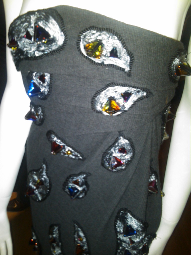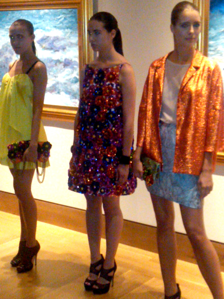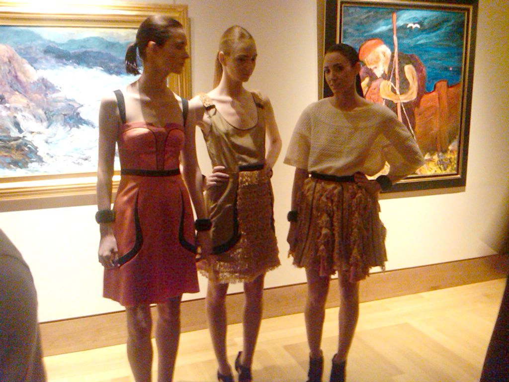 Presented on mannequins was the Fall/Winter 2010 collection with Swarovski crystals accenting classic simple evening dresses and elegant flowing gowns. Real life models showed-off the Spring/Summer 2011 collection of colorful, playful, ready to wear dresses.