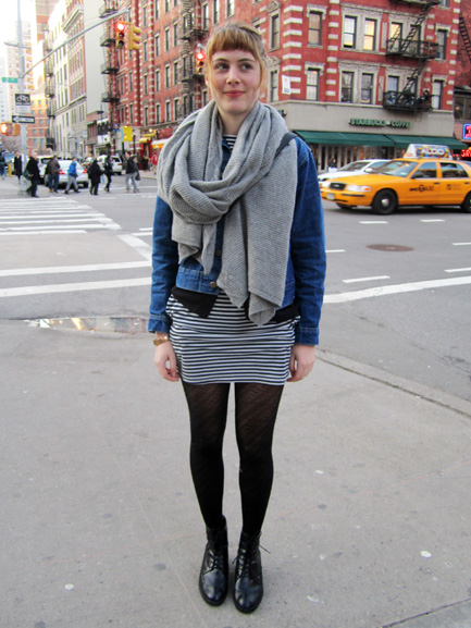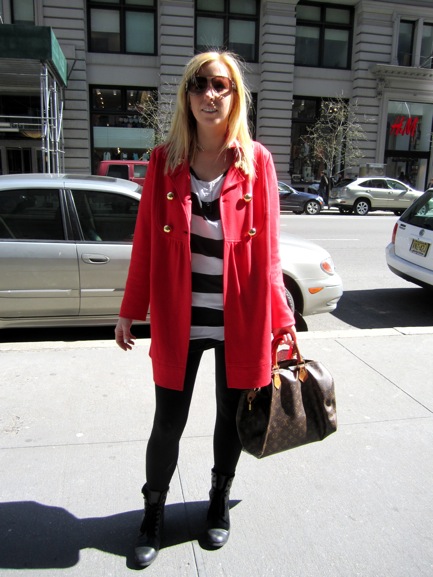 Some new shots of street fashion in NYC. Stripes are still in. Bright colors are starting to come out. The chunky sweater and thick scarves are a must have until the weather finally starts to warm up. Here’s what we found this time ’round…
