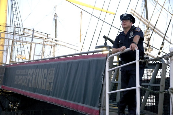 Police watching crowd during Ted Leo and the Pharmacists at the South Street Seaport on Saturday, 9 July 2011.
