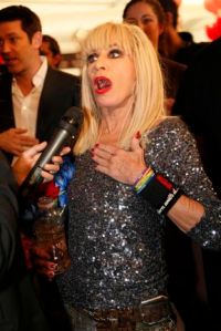 The eager anticipation of seeing Betsey Johnson’s Fall 2012 line was evident in the packed Theatre at Lincoln Center tonight. Inside the Theatre people crowded around the front just to snag video and pics of Russell Simmons and daughter Angela Simmons. Bright pink bags lined the seats surrounding the runway while 60s music played throughout the show.