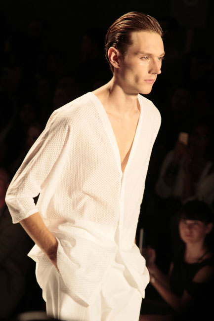 The look was clean, simple, straight edges, light fabrics in unisex designs with texture for edginess.