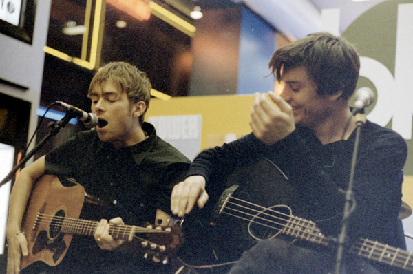 March 10, 1997: Blur promote their album Blur at Tower Records in New York City.