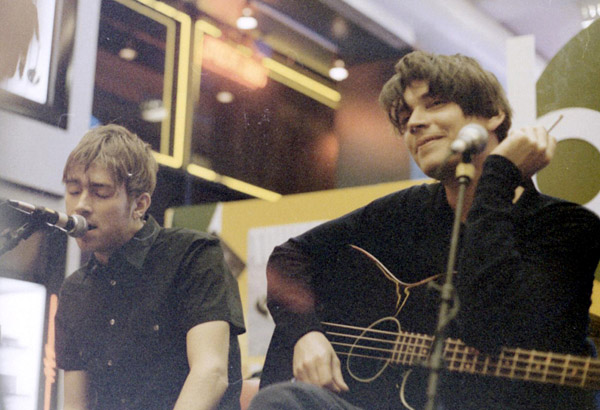 March 10, 1997: Blur promote their album Blur at Tower Records in New York City.