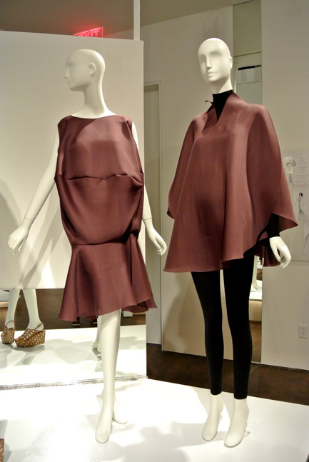 April 26 2013: Yeohlee Teng circle ensemble, Fall 2012: Aubergine silk dress and silk circle top.