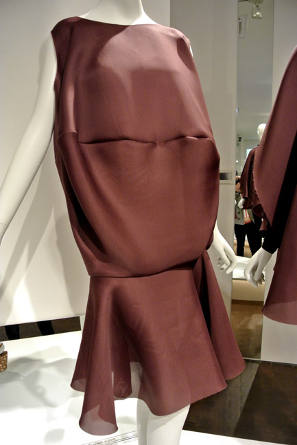 April 26 2013: Yeohlee Teng circle ensemble, Fall 2012: Aubergine silk dress.