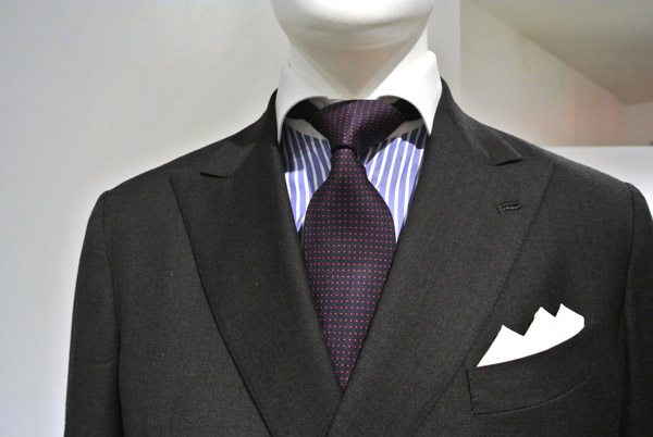 April 26 2013: Bespoke suit, 2000. Super 150’s wool suit, cotton shirt, silk tie, linen pocket square.
