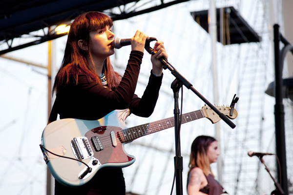 Brighton quartet, Fear of Men, brought the loftiness of the UK seaside to New York’s seaport on Friday, 21 June 2013. Headlining the night’s Seaport Music Festival, at the South Street Seaport, with their twee/90s alternative sound, the band’s non-stop swaying with guitar in hand made for some fun and dramatic visuals befitting for their music.