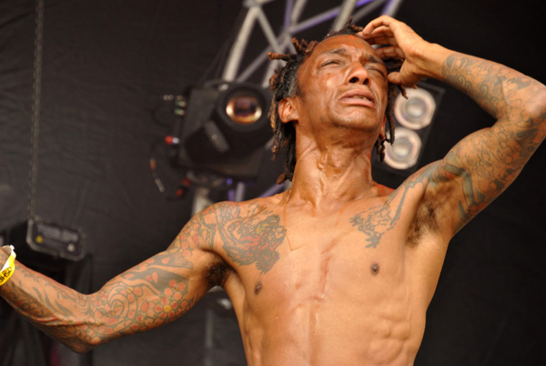 1) Tricky – Shirtless, emotional, and alot of wicked tattoos. He also invited audience members onto the stage, which included a young girl of about age 8ish. I think she may have found her calling.
