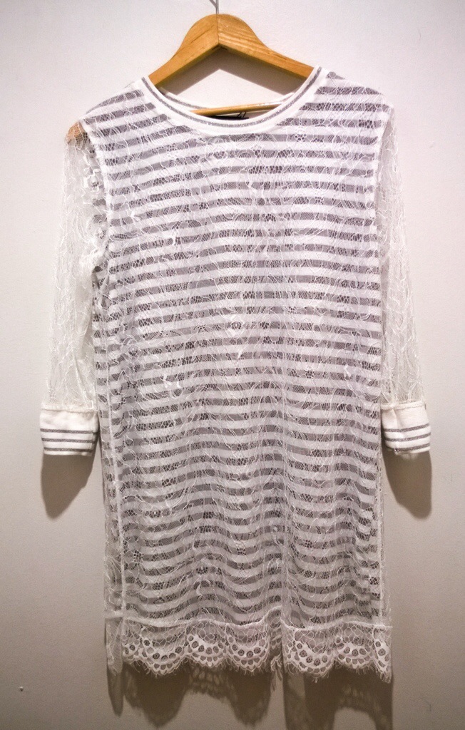 The one on the left was a dream, pink with bright pops of yellow. Sadly it didn’t come in my size. The one on the right did come in my size, and I like that the dress under is a cotton material. I also like the sleeve.