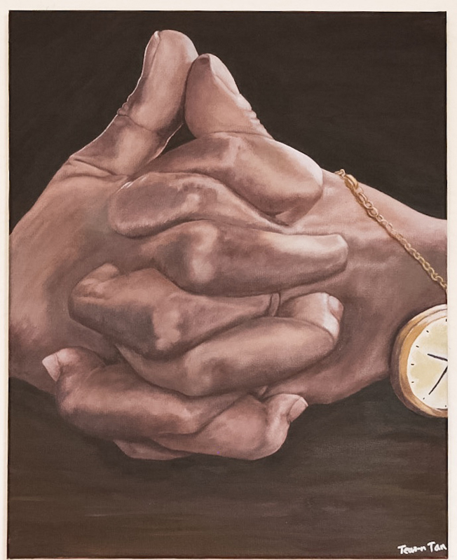 Here’s the final piece of my hand project. In Antecessum (The Anticipation) shows thumbs twiddling with a small chain watch on the side symbolizing the wait that we all have experienced. It’s up to you the individual as to whether the wait is for something positive or negative. I choose the former. I hope you do too.