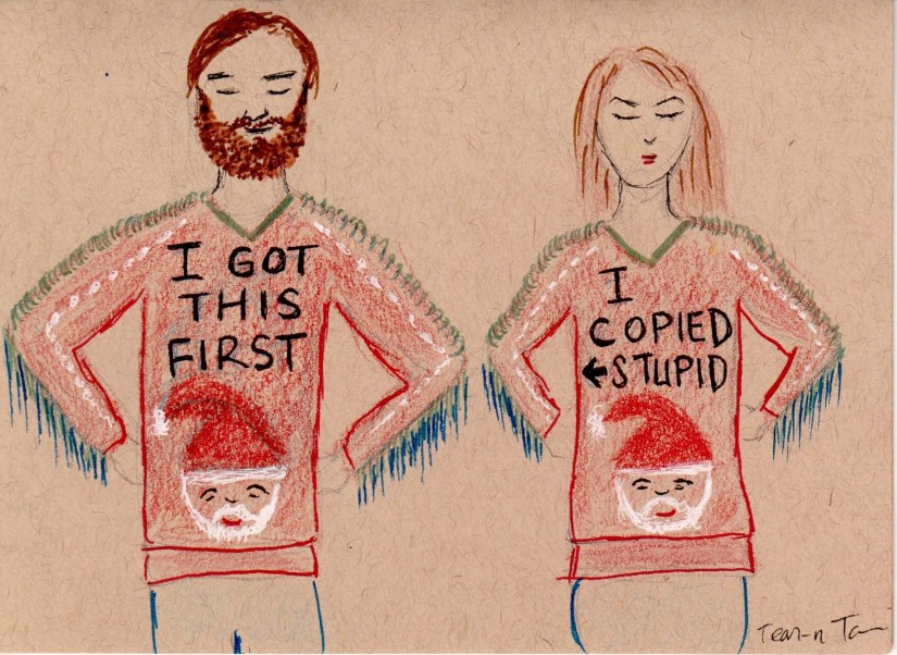Your Christmas sweater is so ugly, even distressed denim and Uggs won’t go out with it.