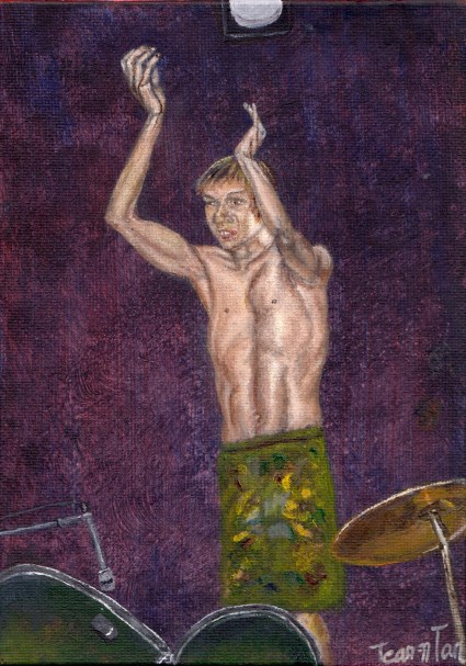 ‘Tis the season for bad puns. Scored Shirtless is my recent painting project on shirtless musicians I’ve photographed. I haven’t sifted through all the photos in my library, but I think I found enough for now.