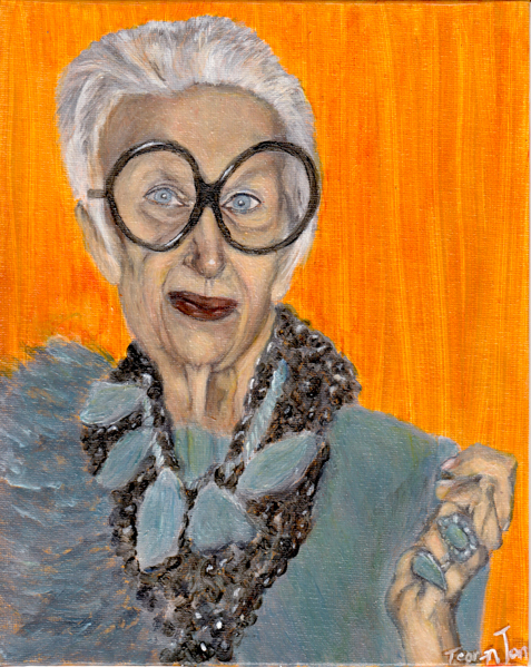 Recently I completed a portrait of a fashionable woman and had the itch to do another portrait. Who better to paint than the one and only Iris Apfel? So I completed this piece in 2 days. I’m hoping to find more people to paint, but I just need to find them. Or maybe they’ll find me!