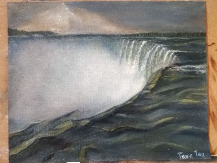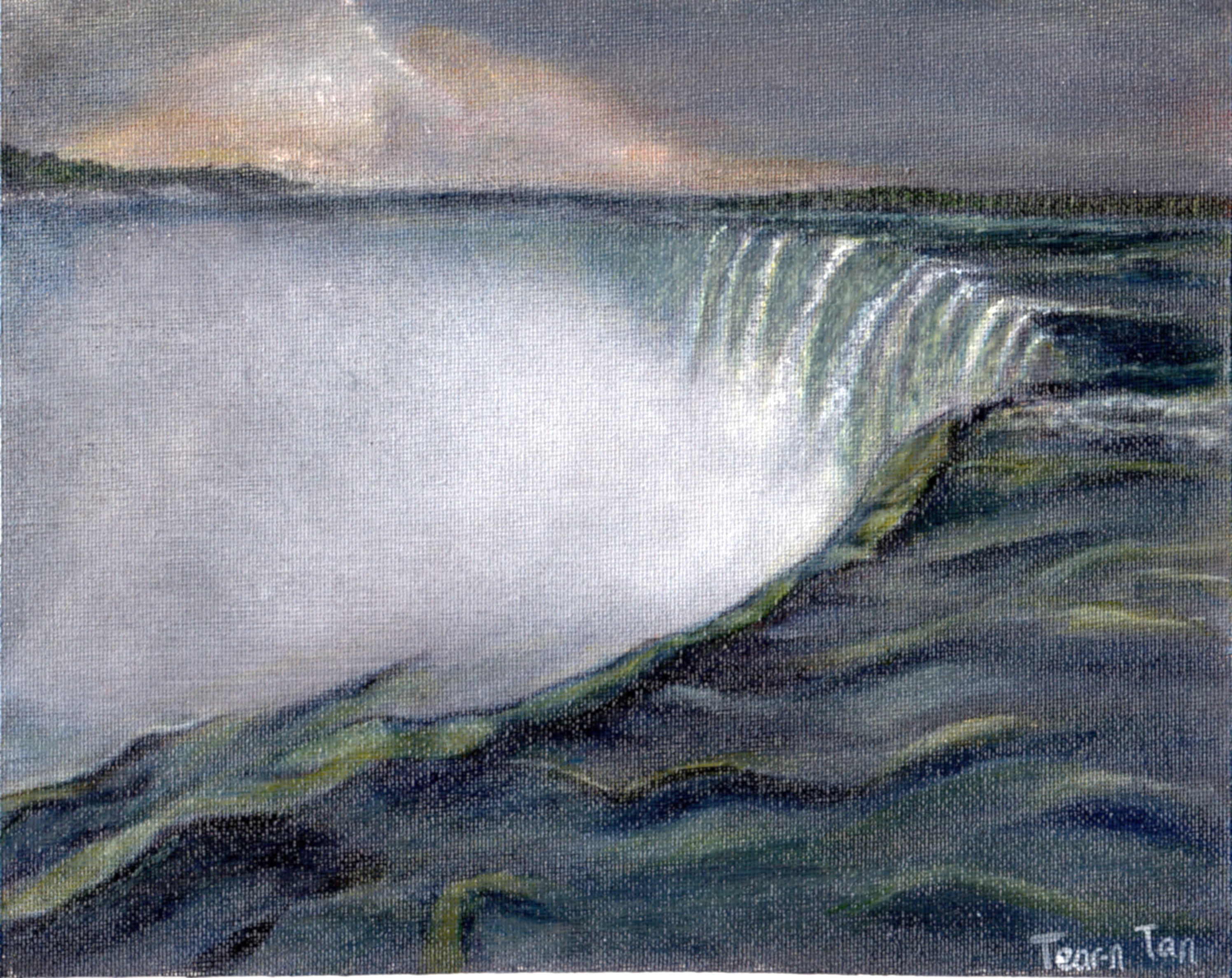 I don’t really like doing scenery, but I enjoyed this one. I really loved doing the waters in the front of the painting. Here’s an 8X10 acrylic on canvas of Niagara Falls viewed from the Canadian side.