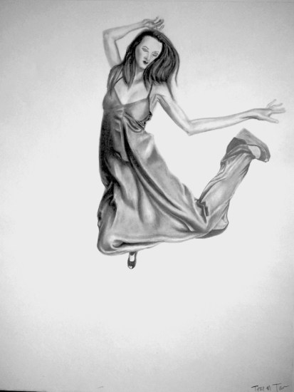 My latest drawing of a woman flying, floating, jumping. The phone photo isn’t that great, I’m going to have to take a better photo of this. The background isn’t that gray.