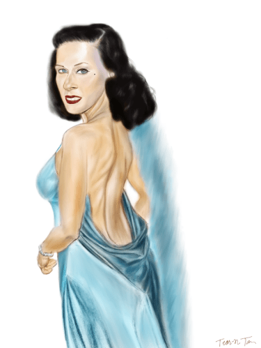 Just completed, my latest drawing of model Dita Von Teese from the Los Angeles premiere of “The Rules of Attraction” in 2002. Also in the photo was boyfriend at the time, musician Marilyn Manson, but I decided to leave him out of this piece. It was really about getting the over the shoulder pose for this drawing.