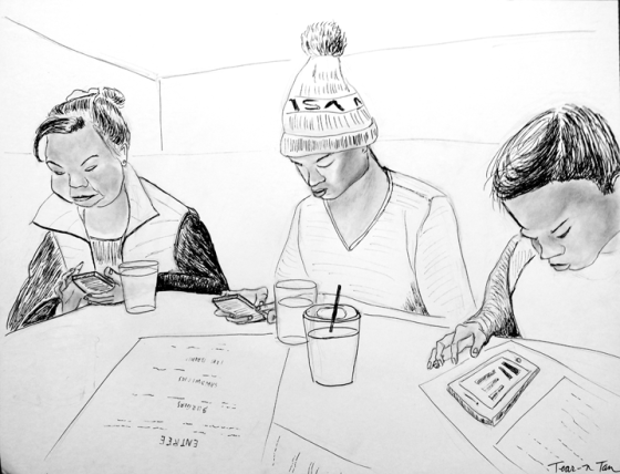 Hello? (Grandma and grandsons stay connected to the world, but not necessarily to each other)