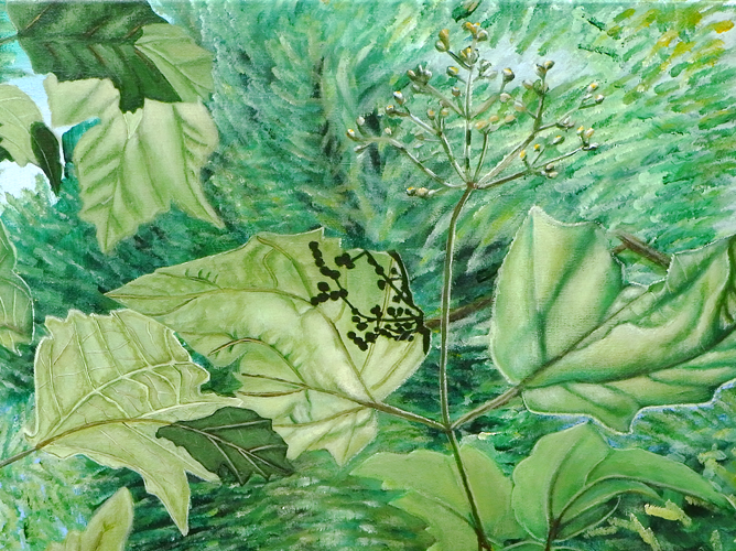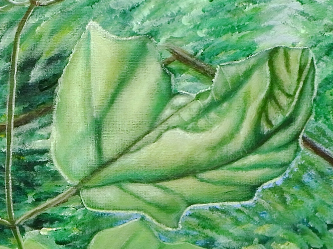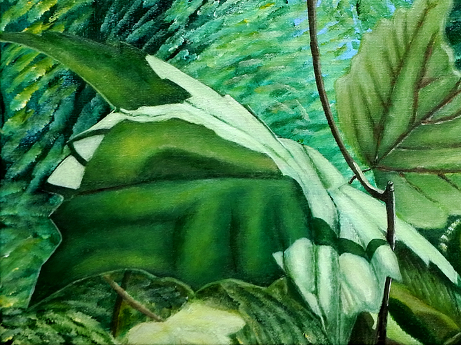 My latest piece is created from my recent interests in painting plants. The last piece I did was of a sunflower and as I was doing the leaves, I realized I really enjoyed painting foliage.