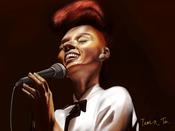 I think this was the first time I actually enjoyed drawing teeth. I usually avoid it, because it feels like such a task, but it was fun working on Monáe’s teeth. I was also having issues on the left side of the face. I decided to do a second version where I just darkened that area, making the image much more dramatic. I’m not sure which version I like more.