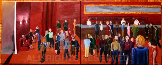 Cafe Life – The Night is Young – 16×40 Acrylic on Canvas (Diptych)